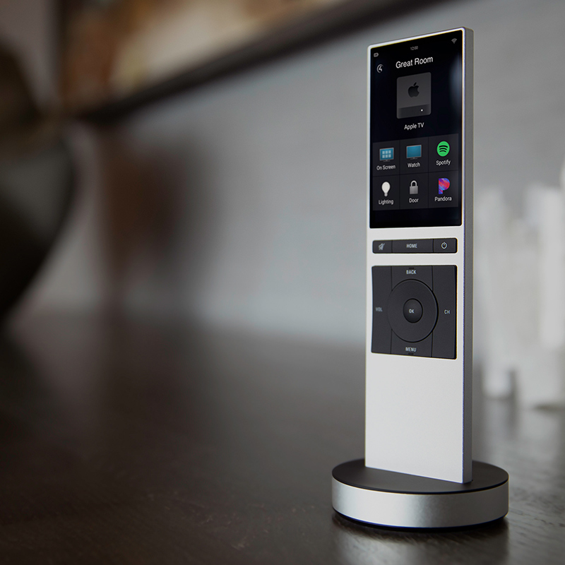 A tap of the “Movie” button drops the screen, activates the projector, queues the sound, and dims the lights. Enjoy a more simplified viewing experience by replacing multiple remotes with just one that is sleek, sophisticated, and easy for the whole family to use.